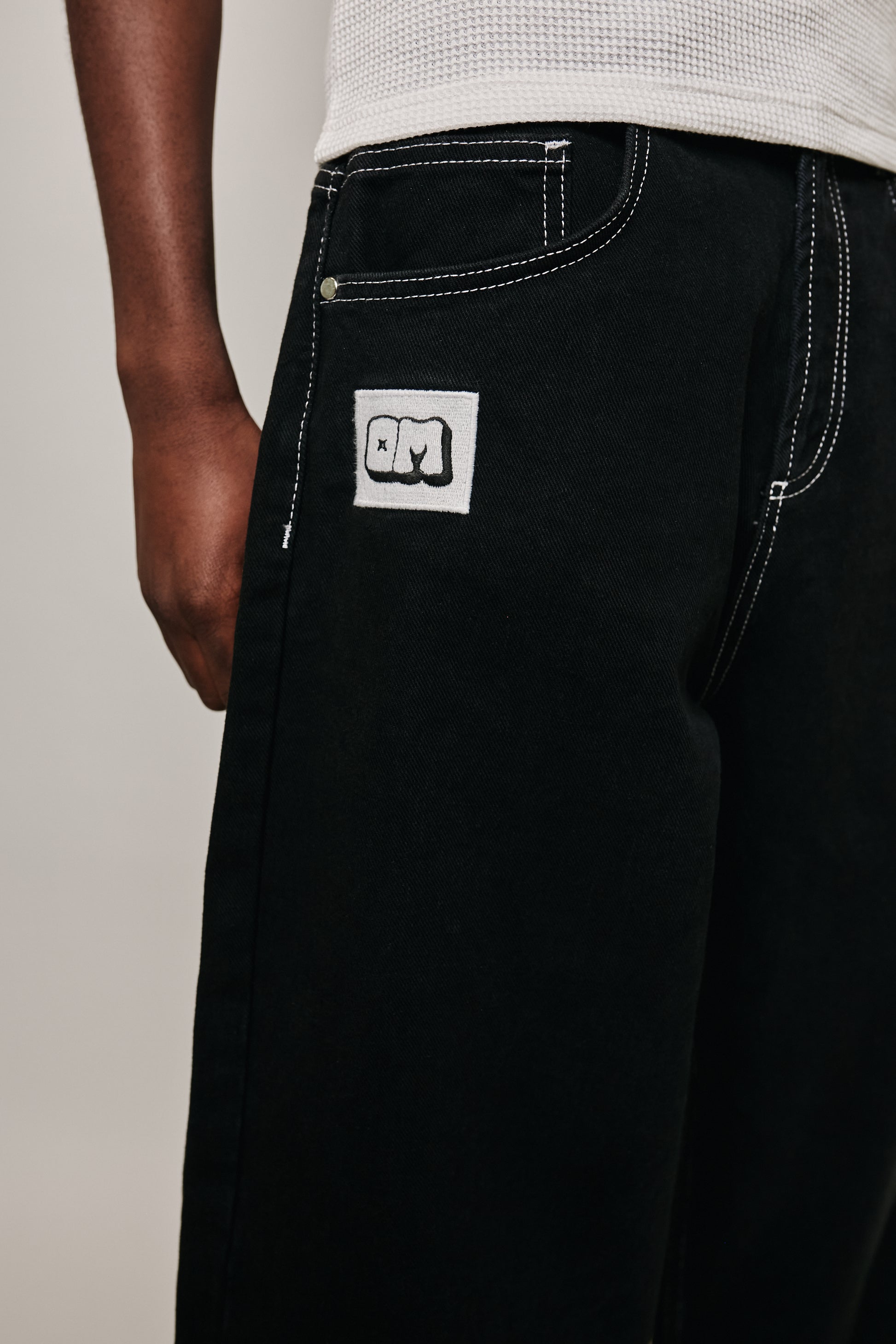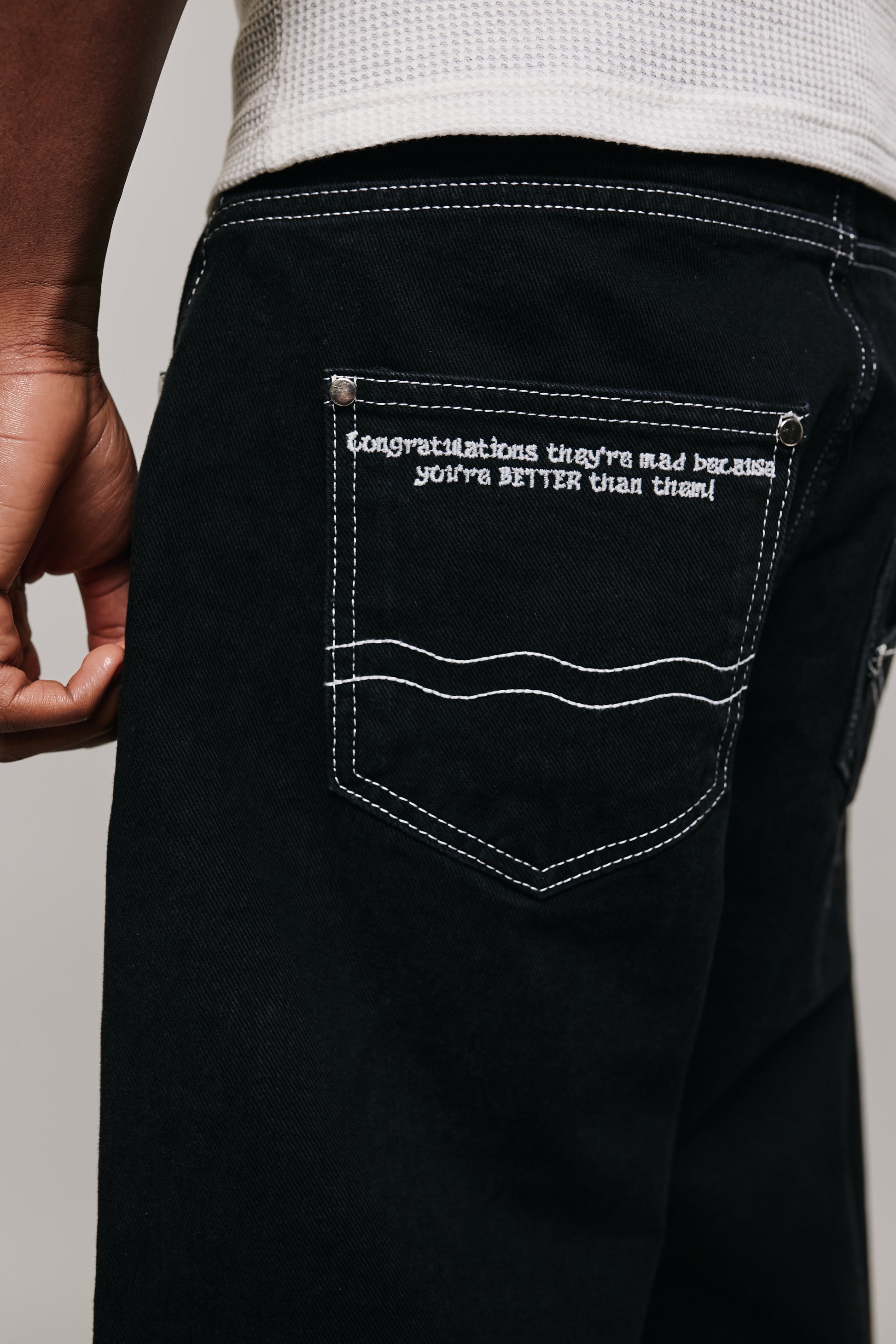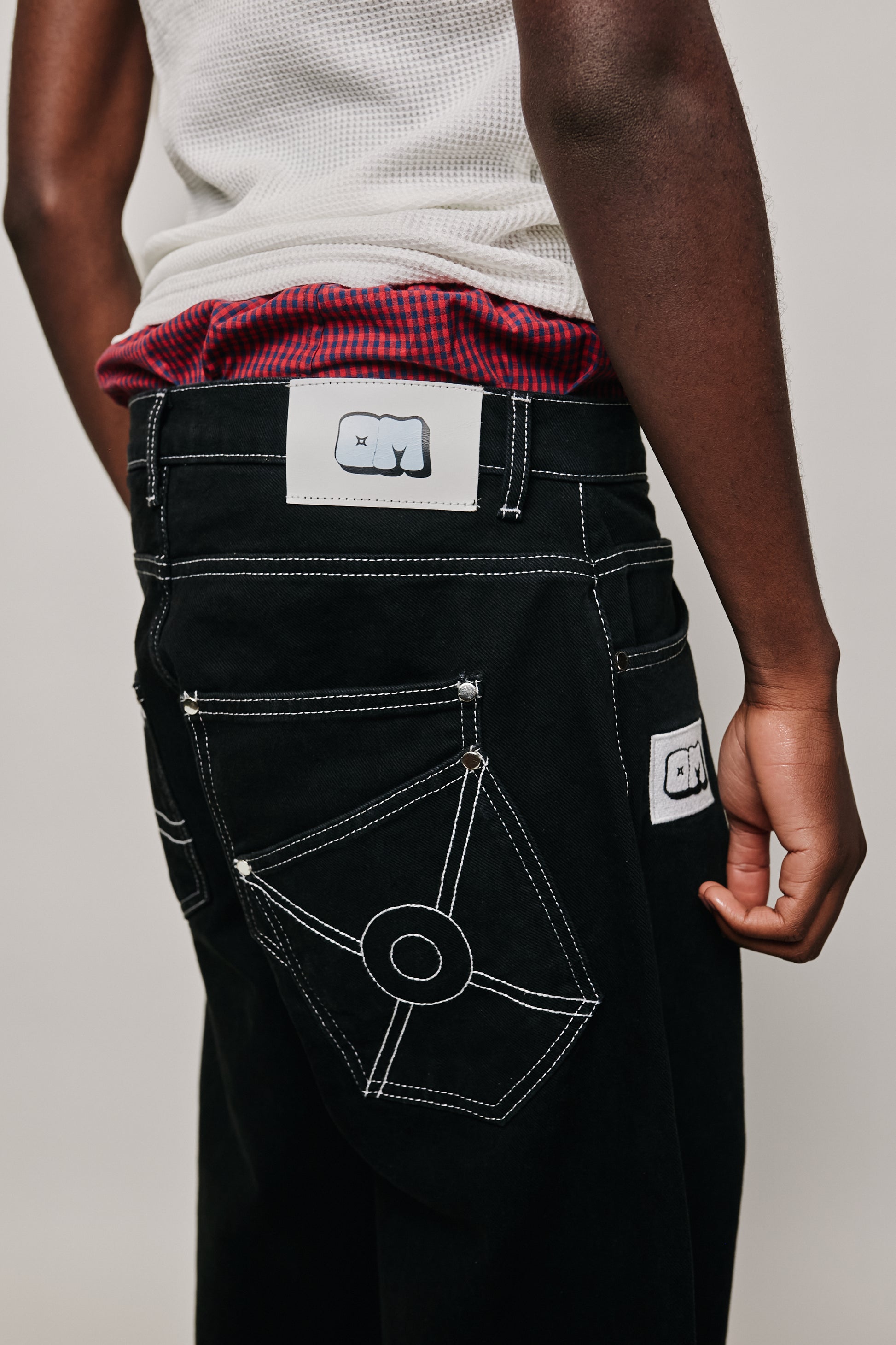 - White contrast stitching